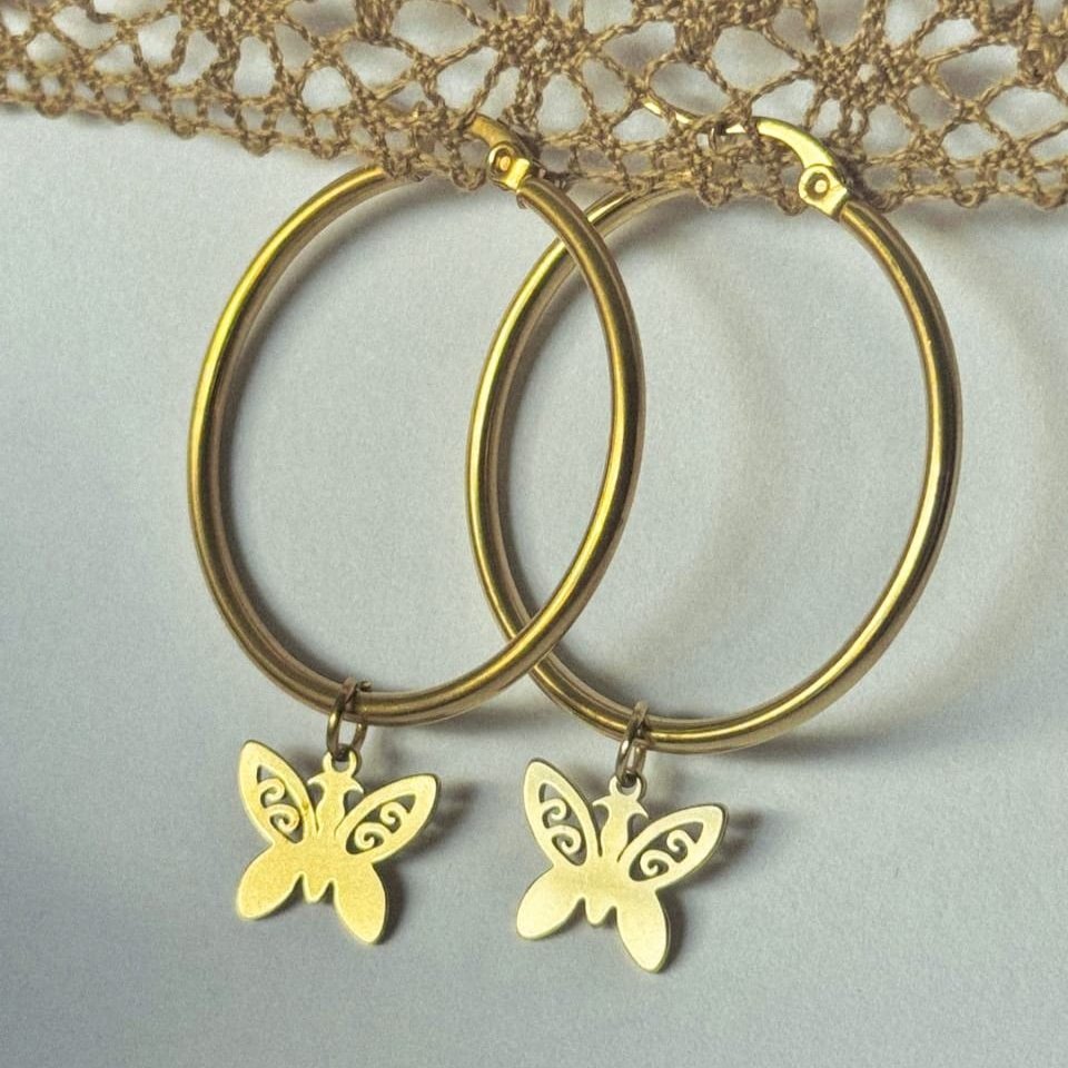 3.5cm Stainless steel gold plated waterproof butterfly hoops