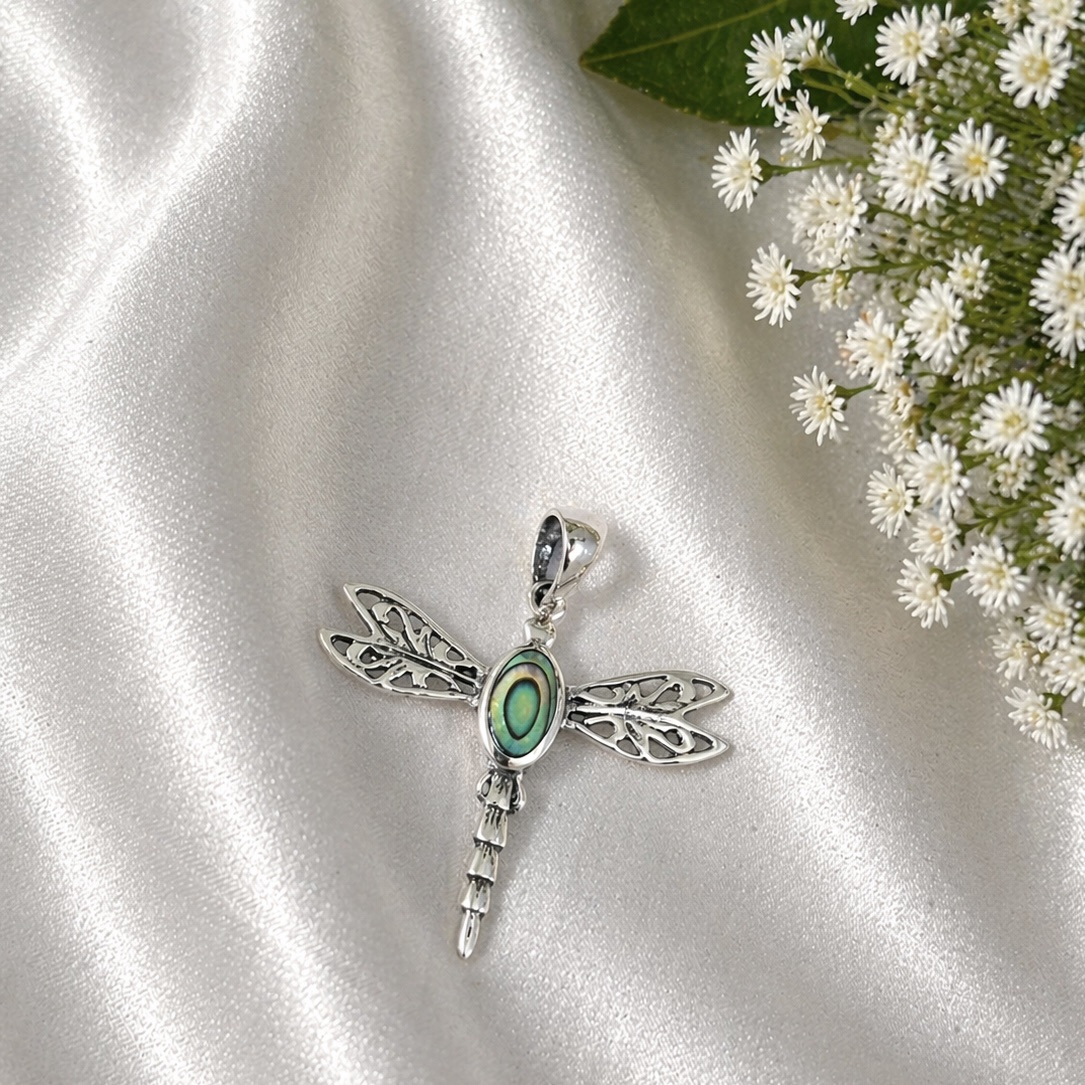 A beautiful Sterling-Silver 925 abalone dragonfly pendant