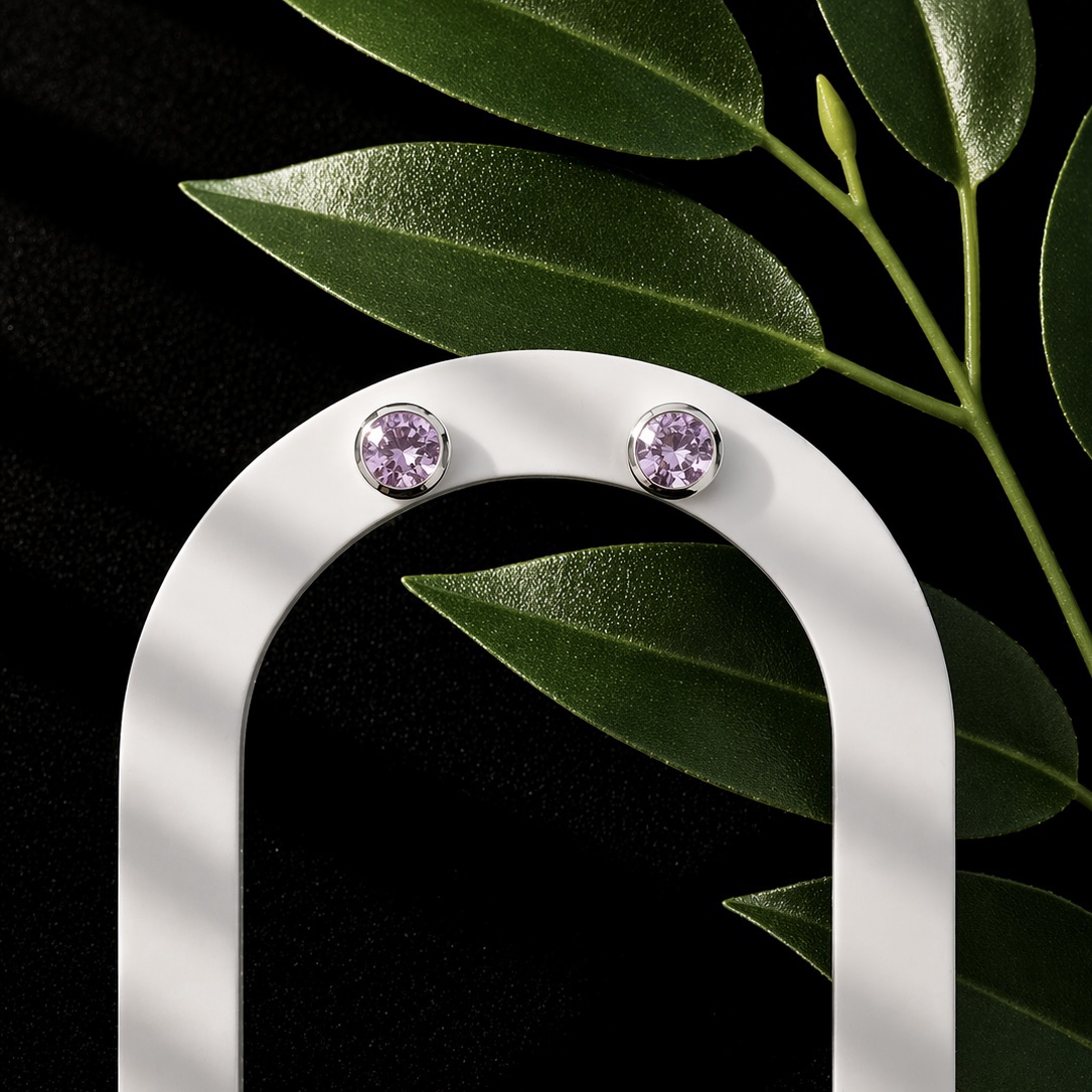 Beautiful Sterling-Silver 925 Amethyst circular stud earrings