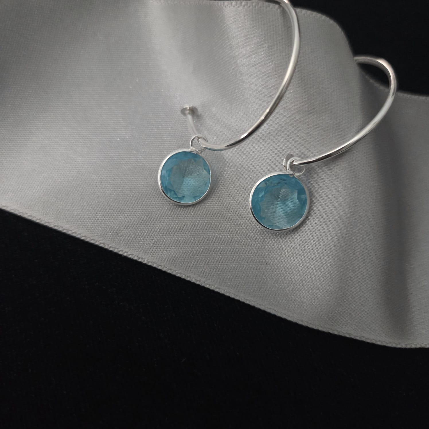Beautiful Sterling-Silver 925 Aqua CZ stone hoop earrings