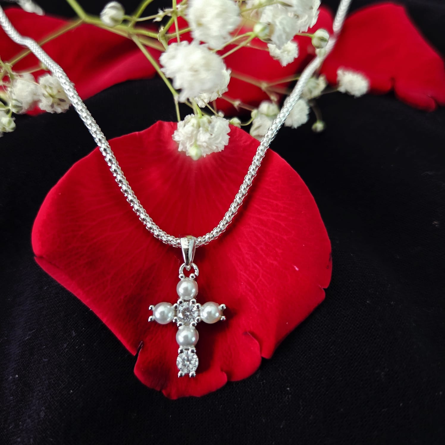 Be the first to review “Sterling-Silver CZ and pearl cross pendant” Cancel reply
