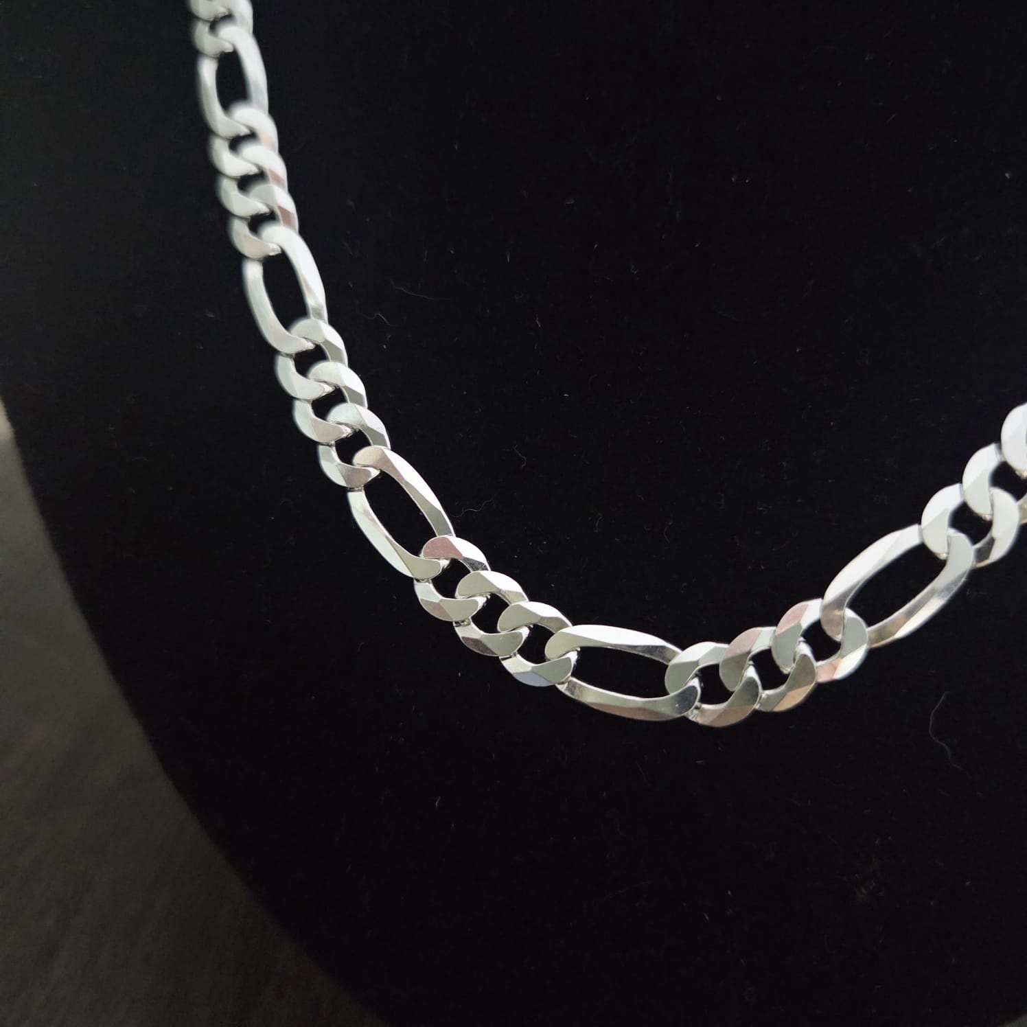 Sterling-Silver 925 Figaro chain mens three link chain necklace
