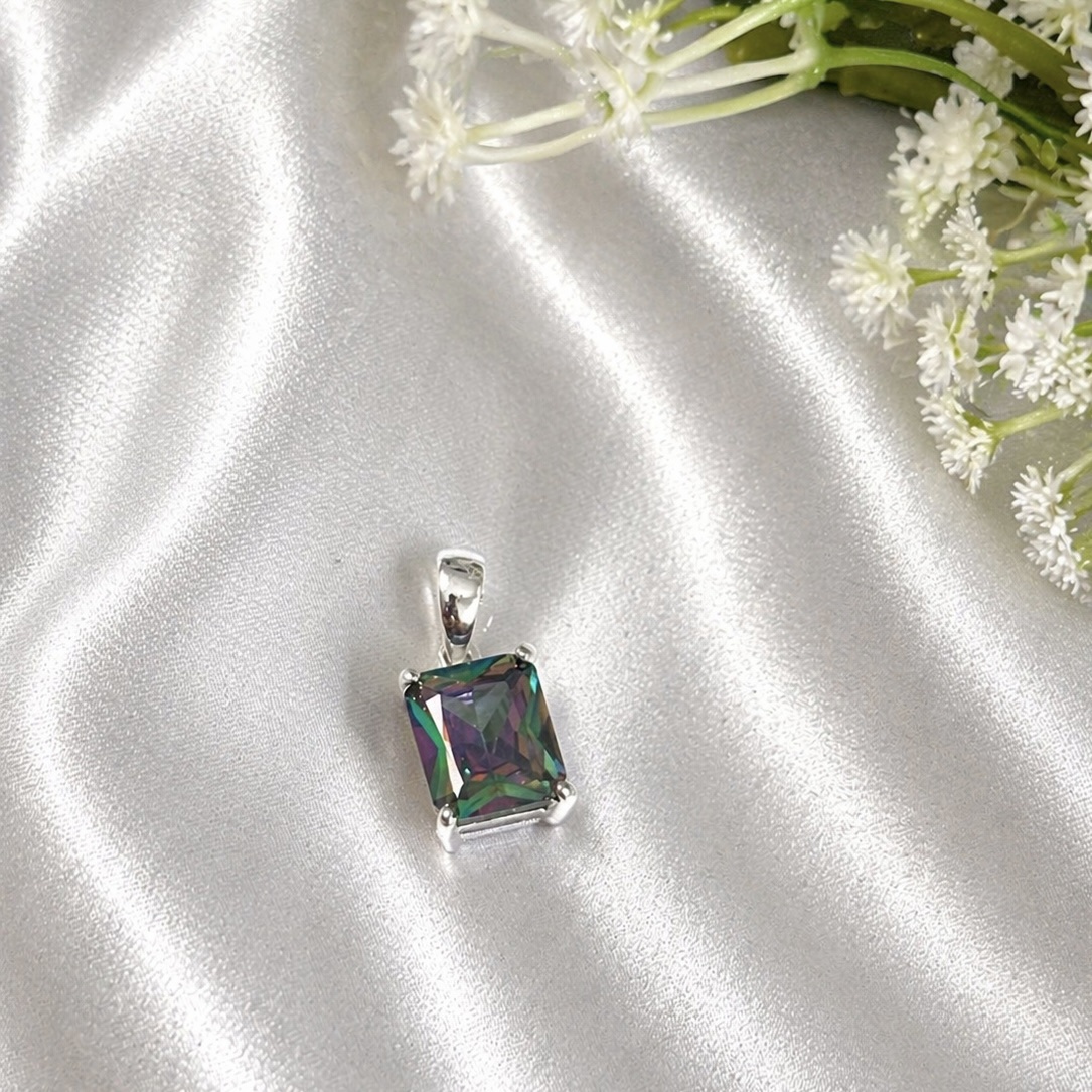 A unique Sterling-Silver 925 mystic gemstone square pendant