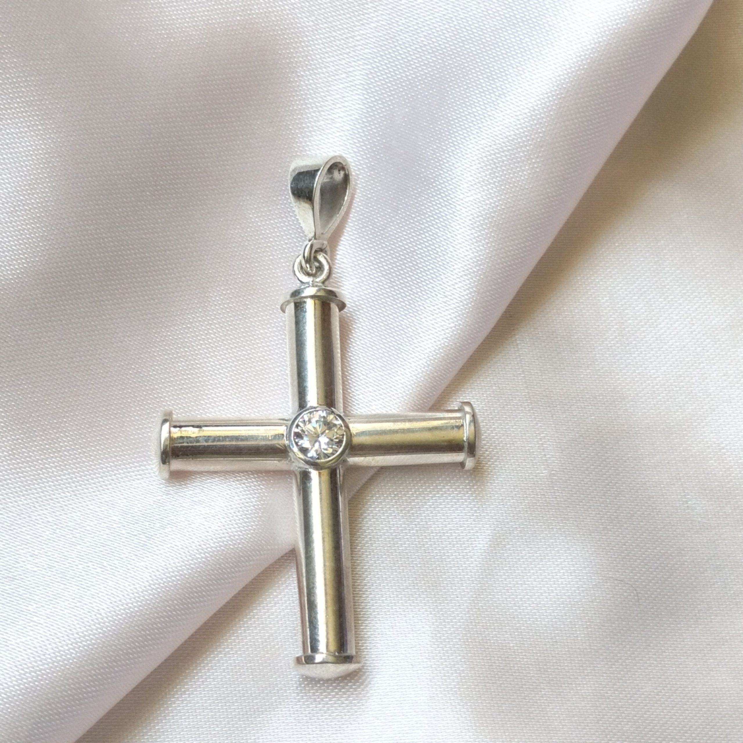 Sterling Silver Plain bulky cz stone cross pendant