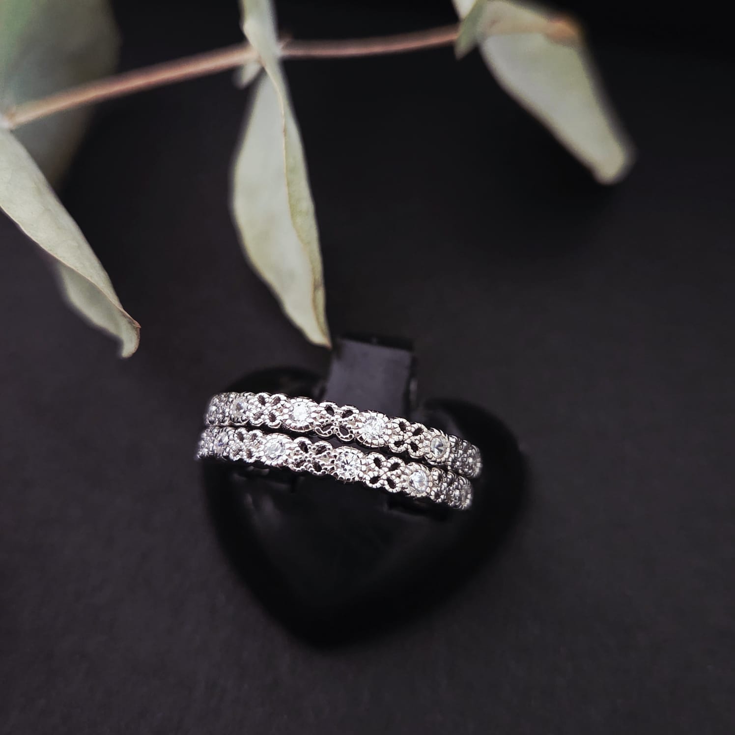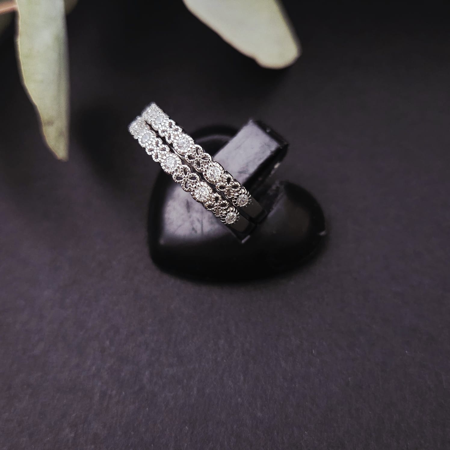 Sterling Silver 925 circular CZ detailed four leaf flower design band set rings
