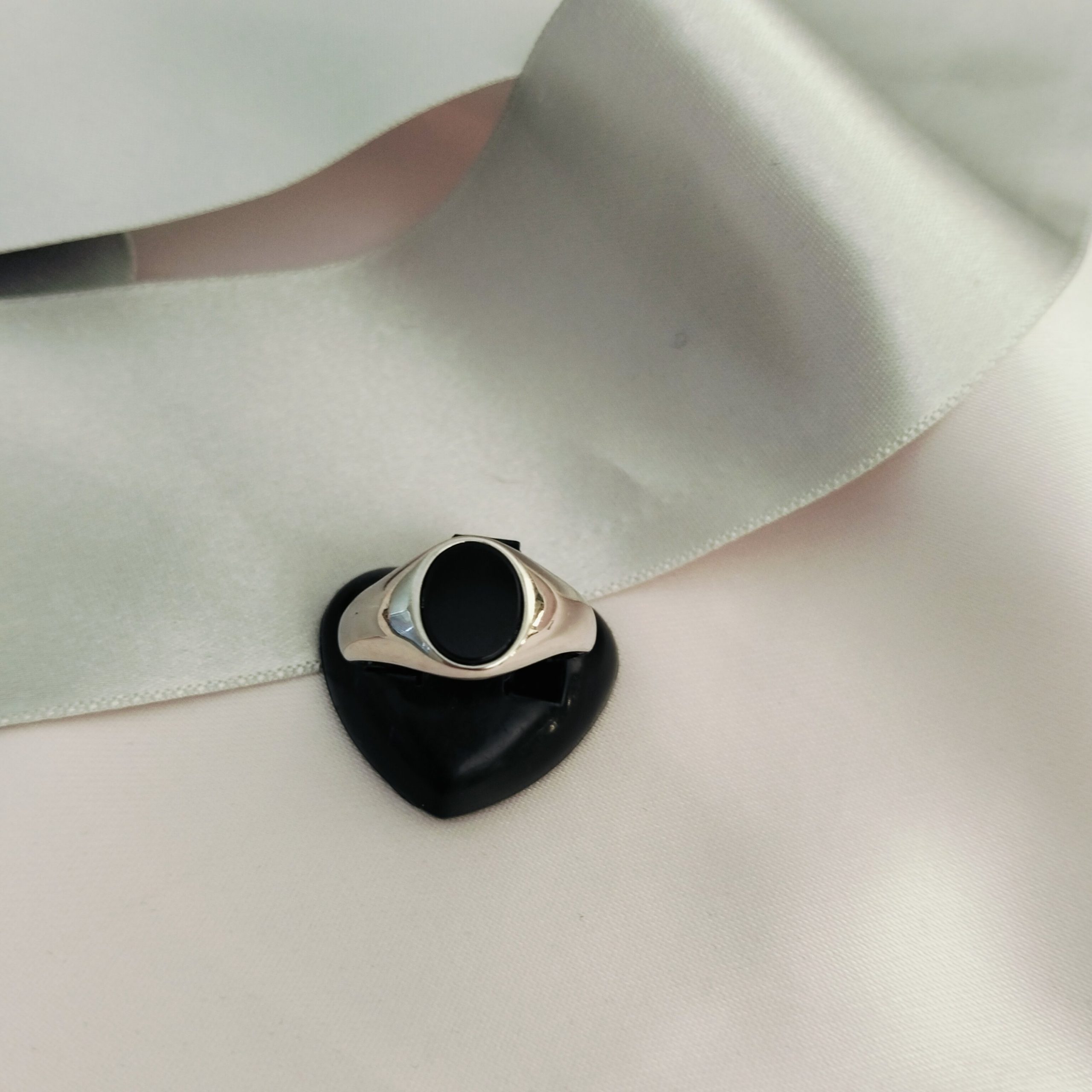 Features a prominent black onyx stone, typically in an oval shape, set within the ring’s face.