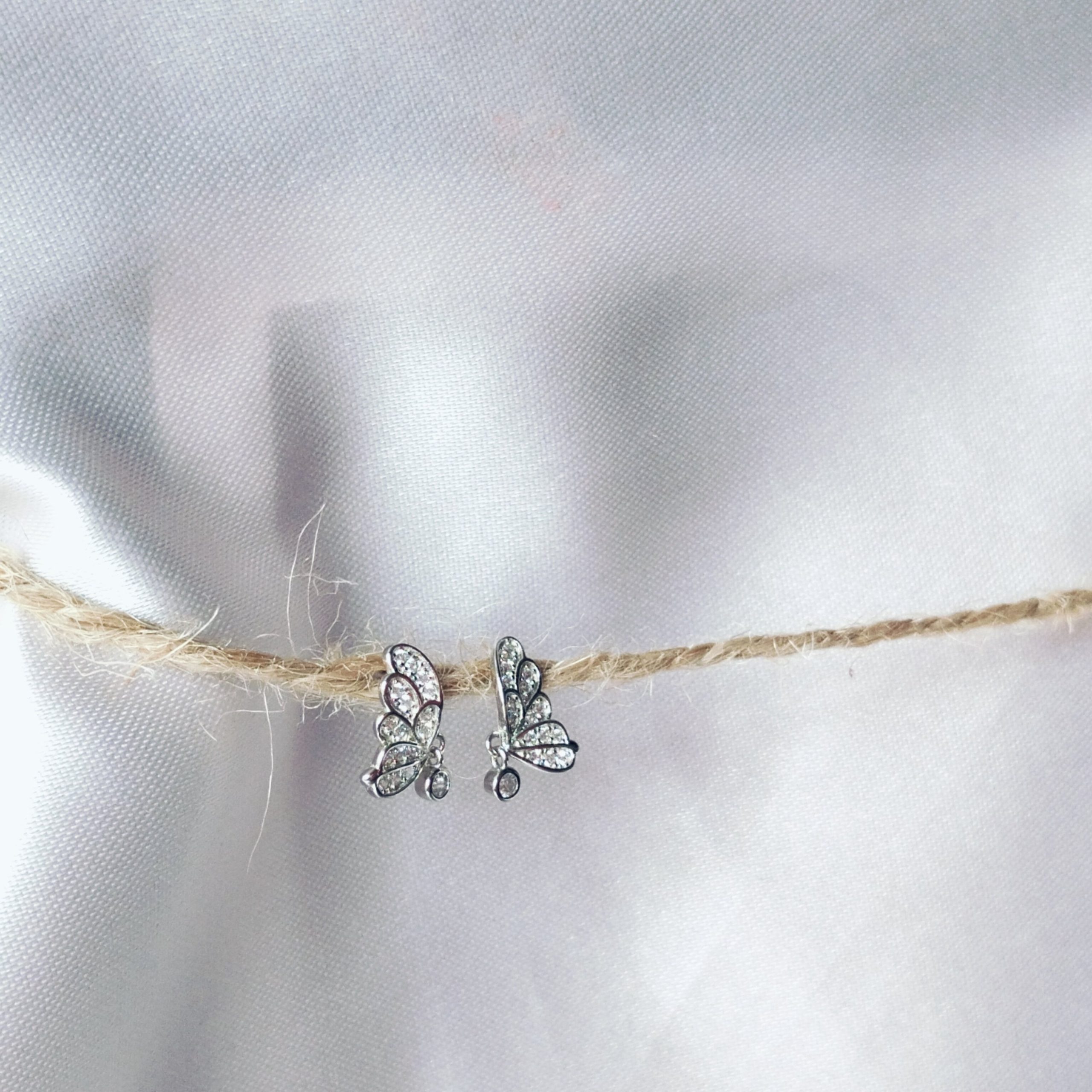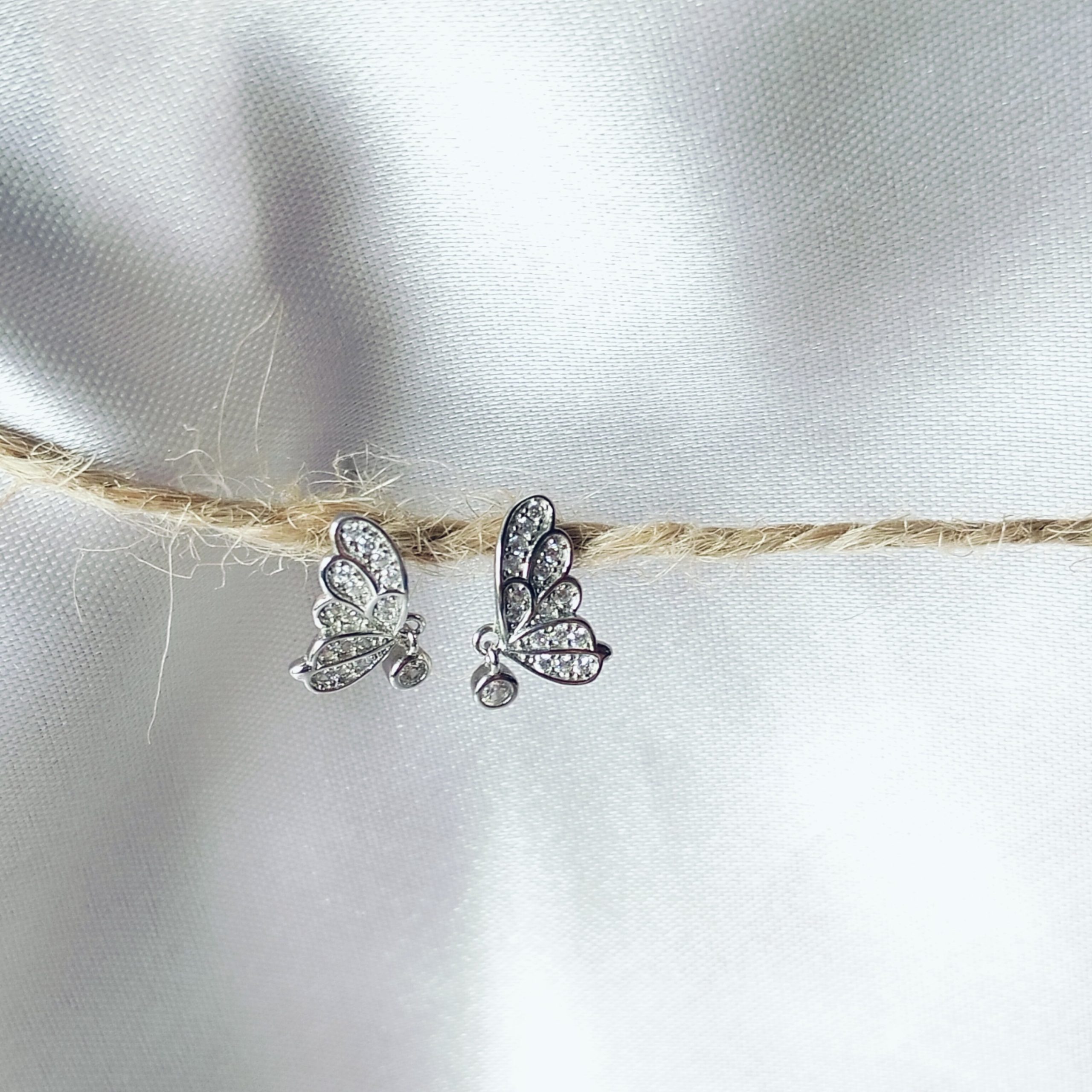 12mm A pair of sterling-silver-925 butterfly cz stone stud earrings.