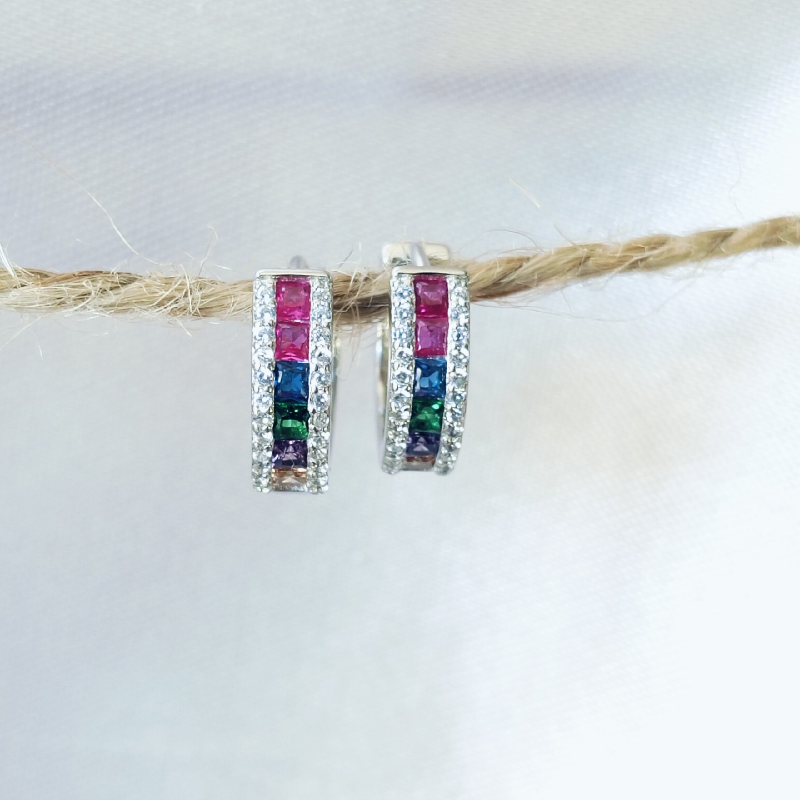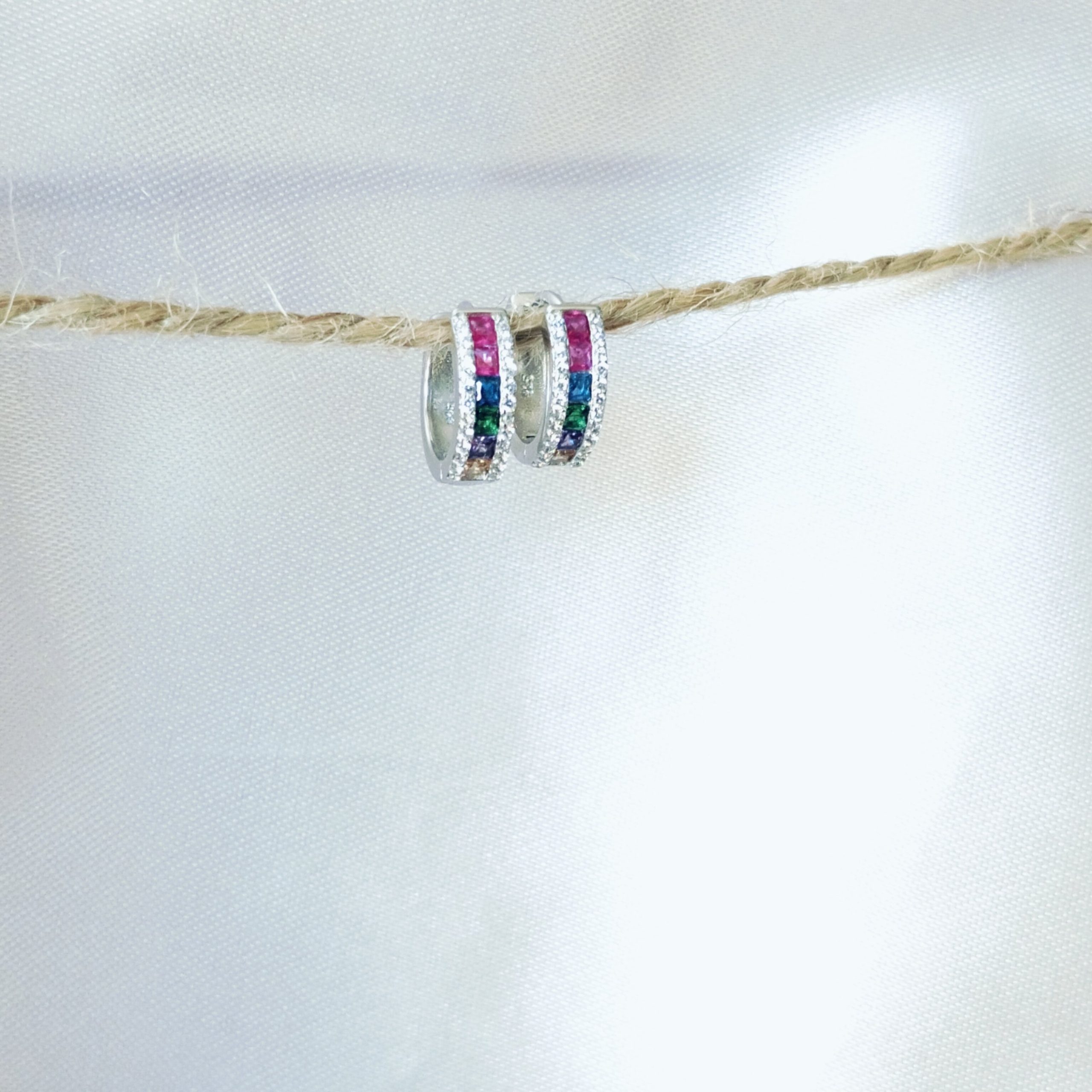Sterling-Silver Colourful CZ stone Huggies