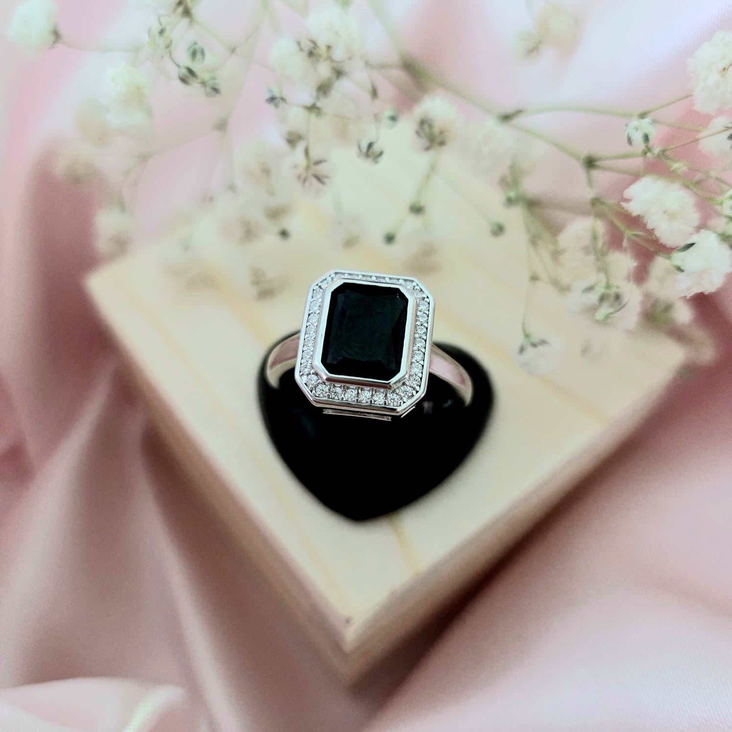 Sterling Silver Square black onyx ring