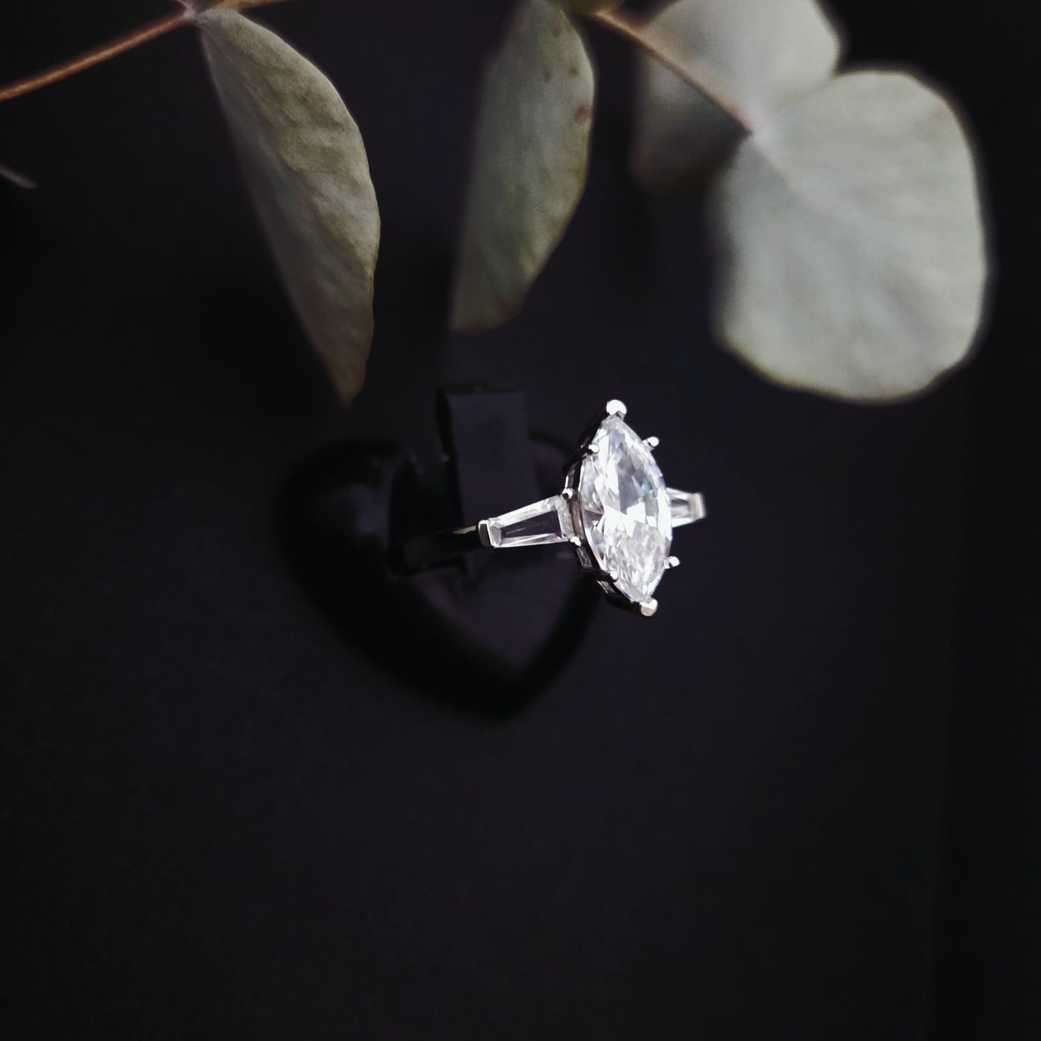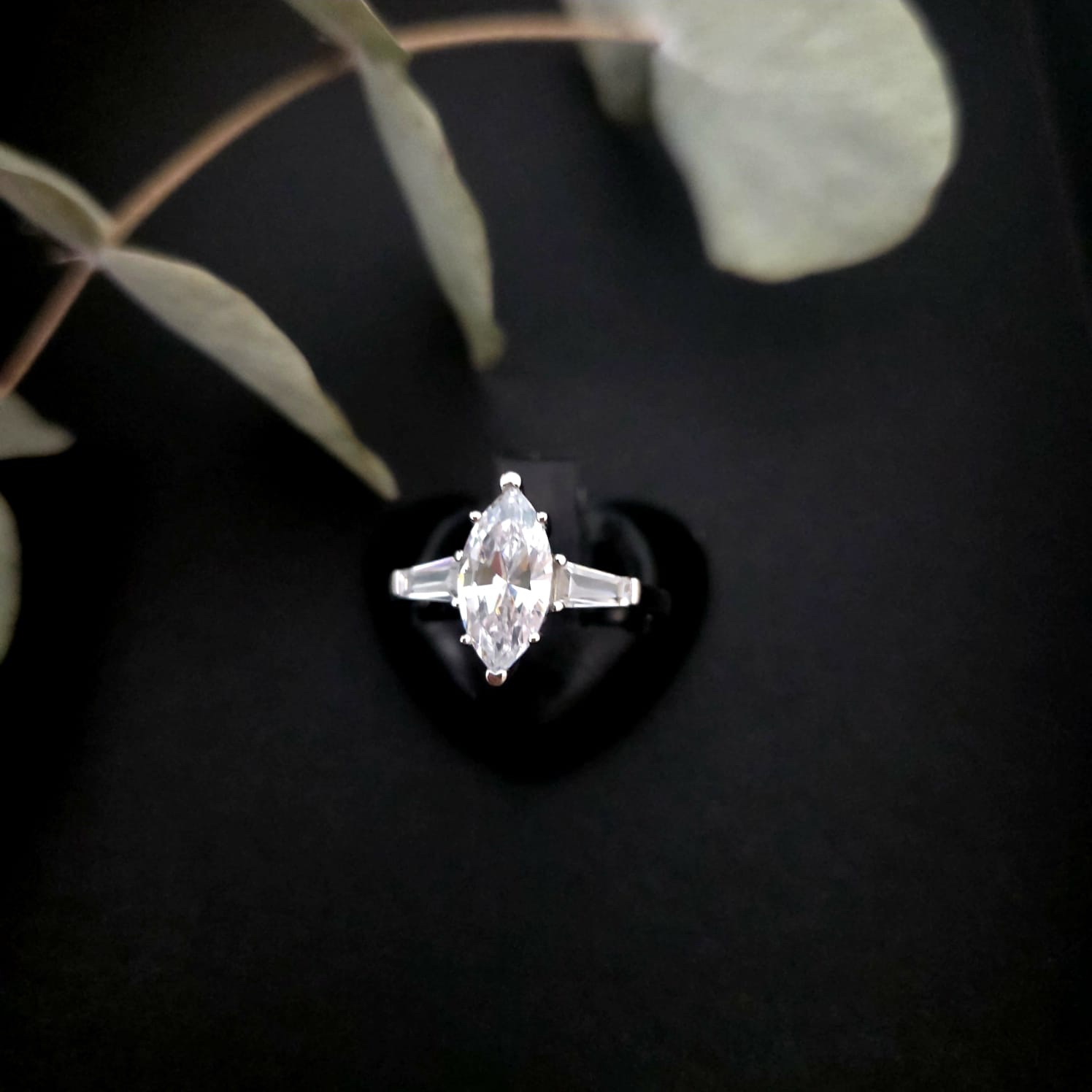 Elegant sterling silver 925 ring with an oval shaped marquise stone ring CZ detailing.