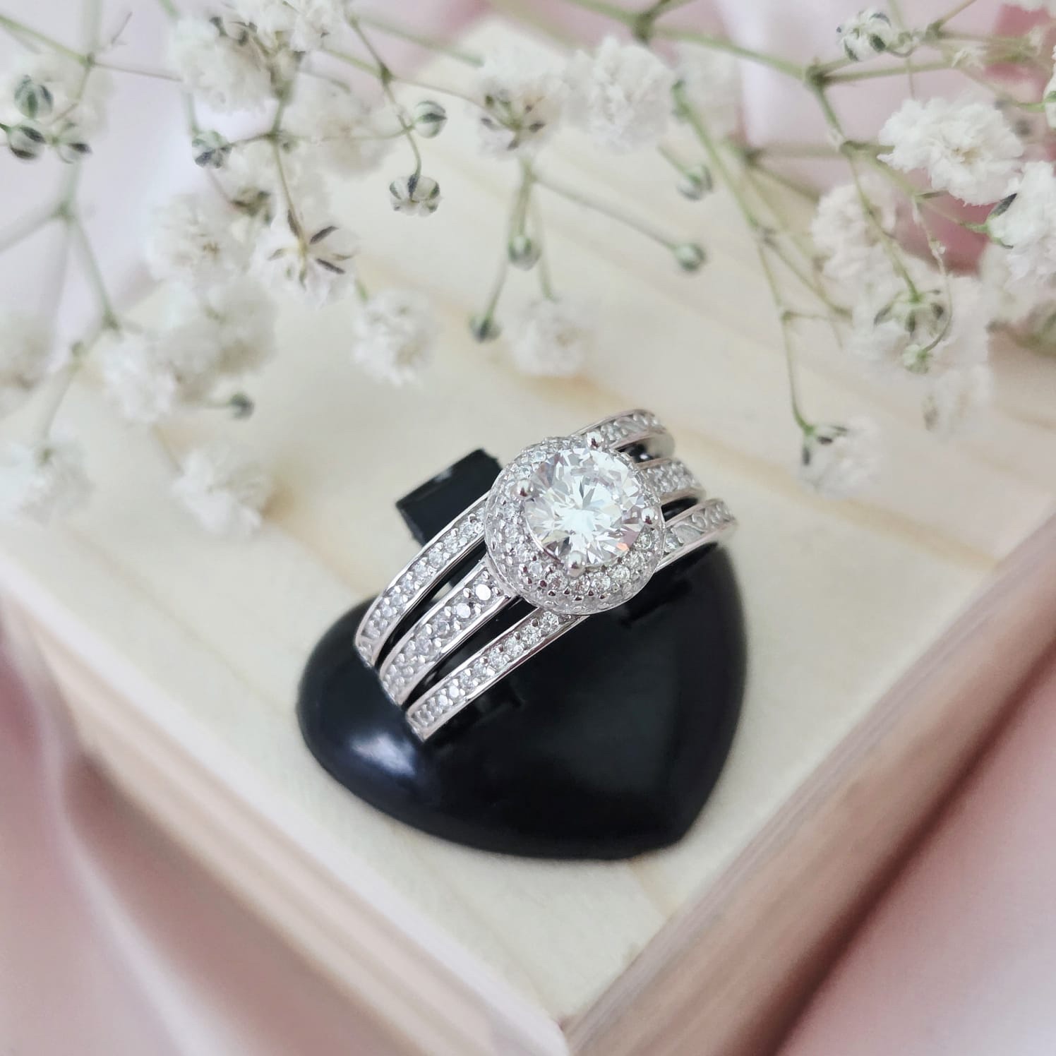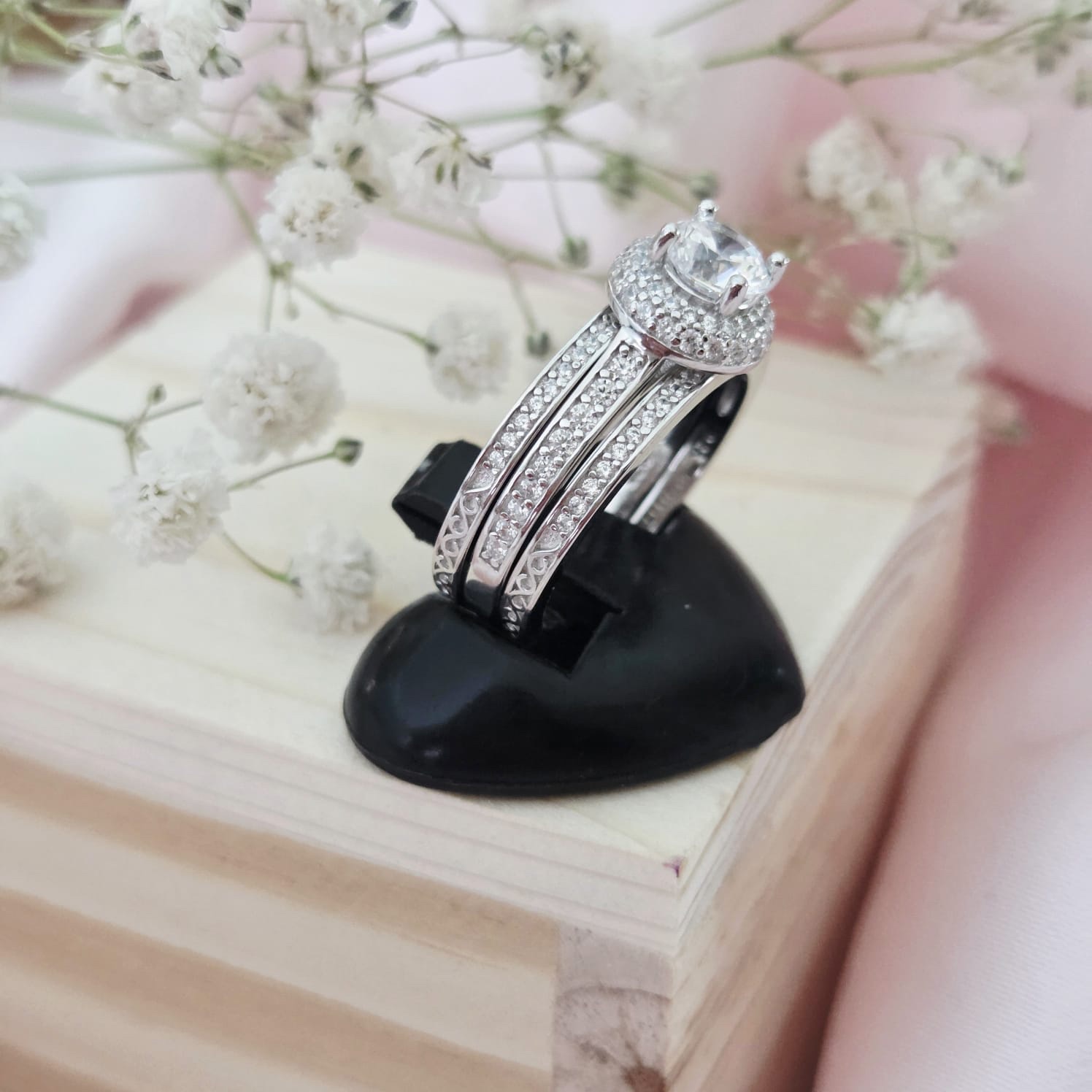 Sterling Silver 925 CZ stone three band detailed wedding set