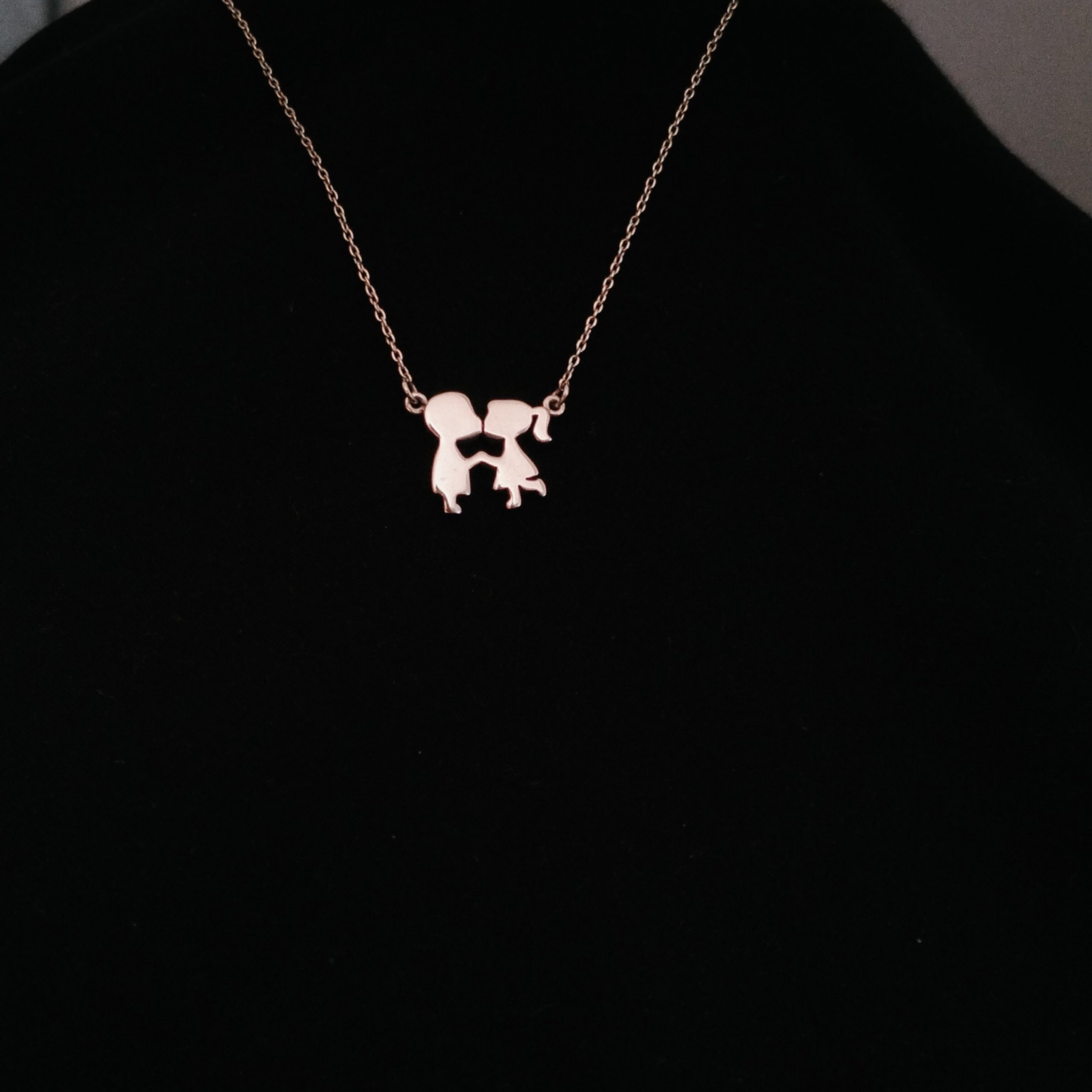 Sterling-Silver Cute Boy & Girl kissing necklace
