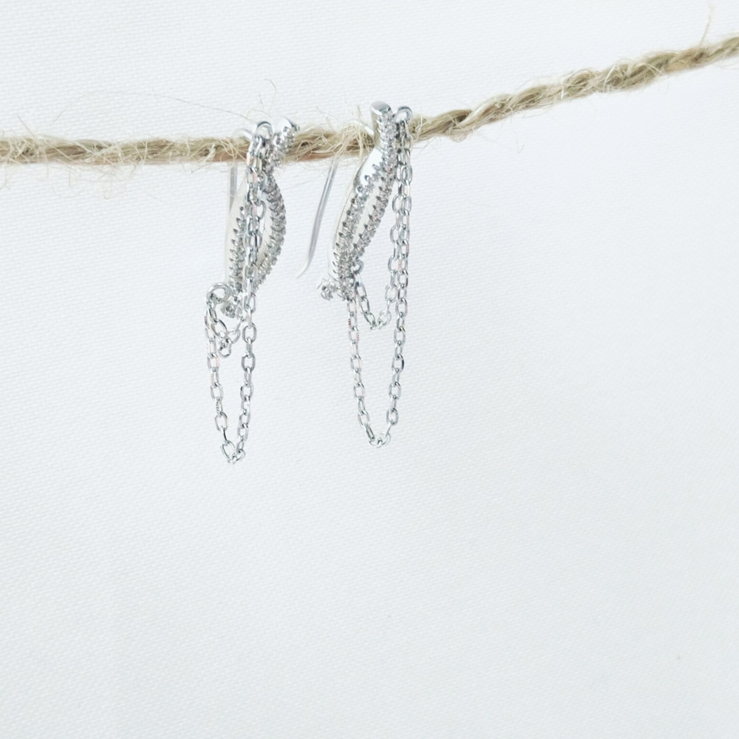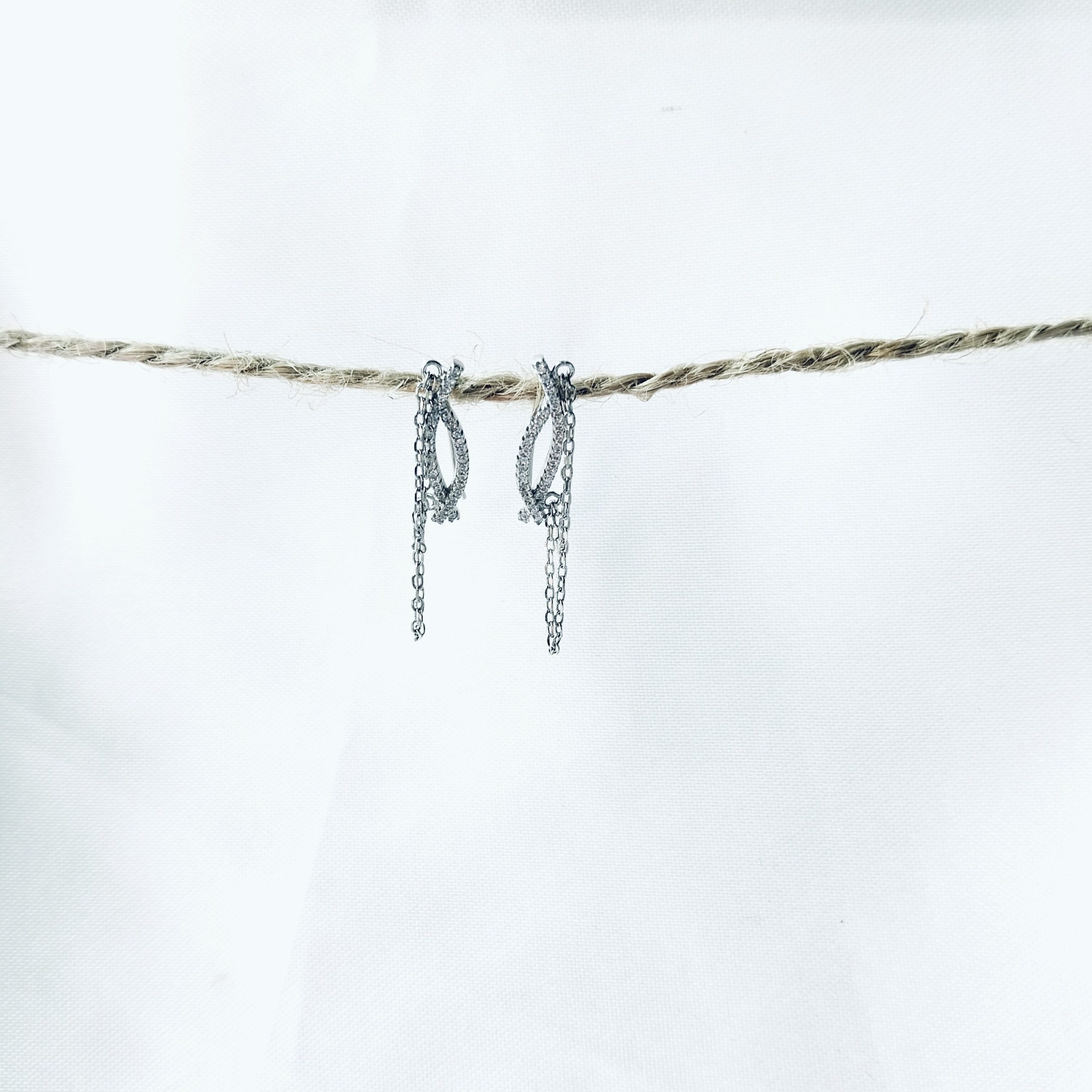 20mm A pair of sterling-silver-925 rope drop look cz stone earrings.