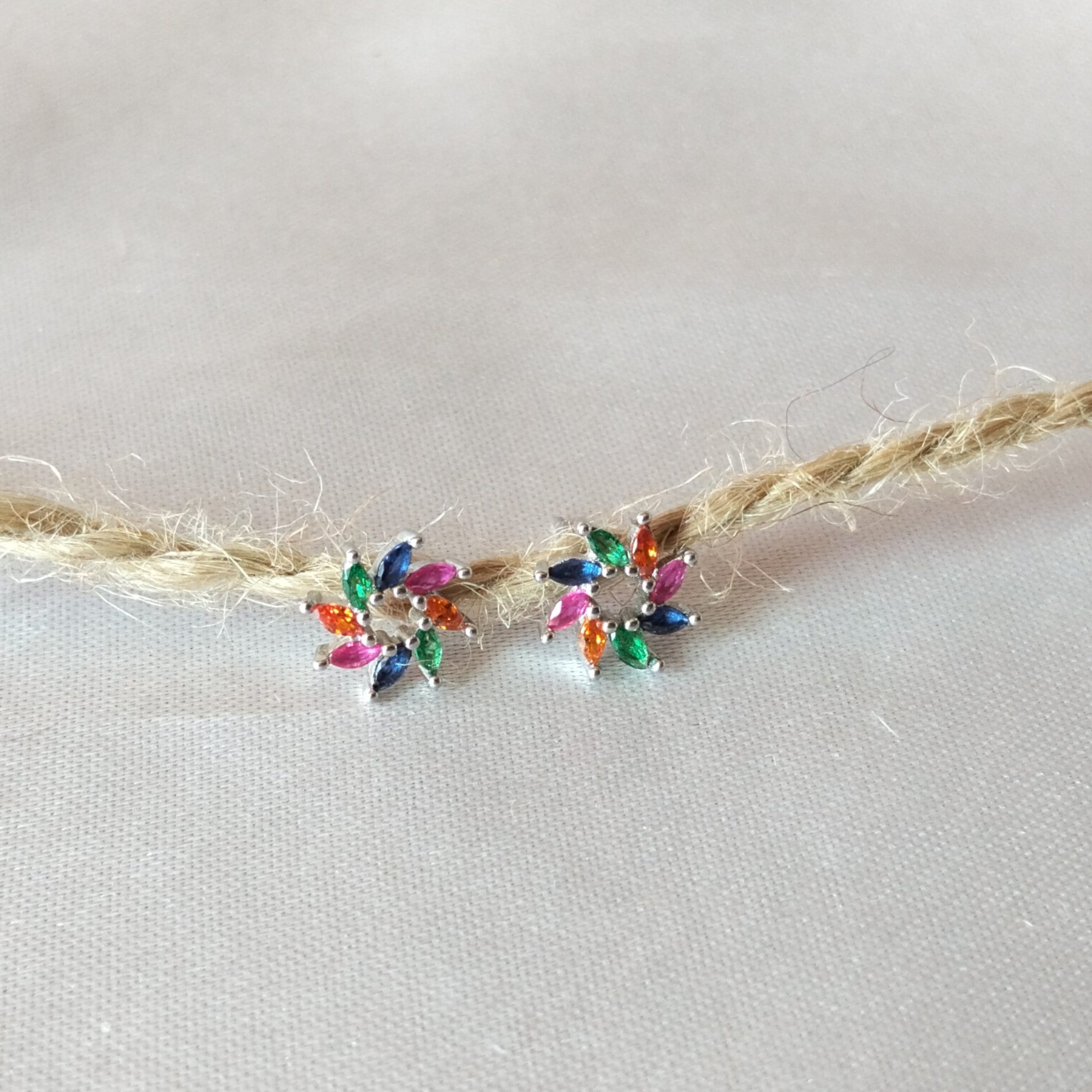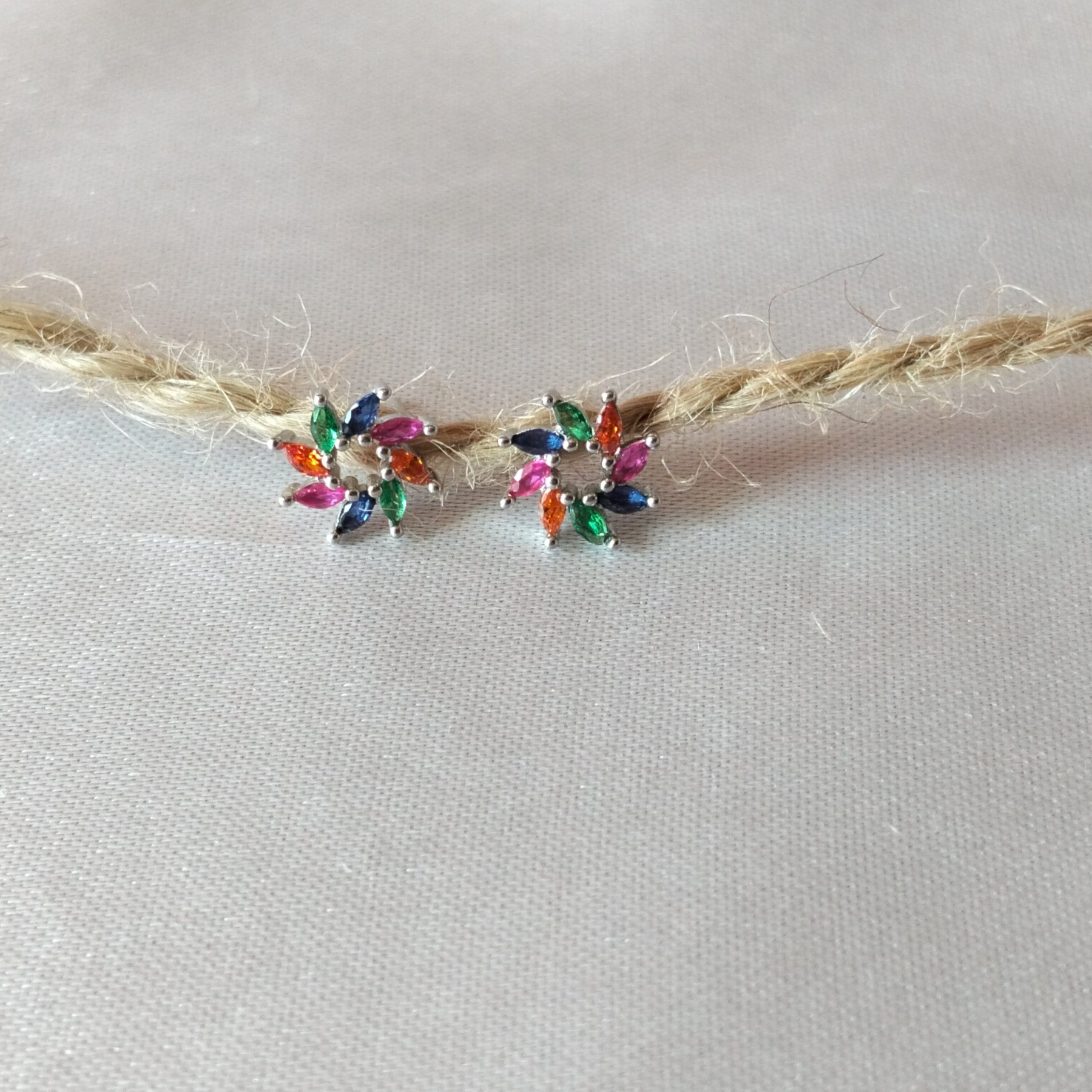 10mm Sterling-silver-925 dark colourful cz stone stud earrings.