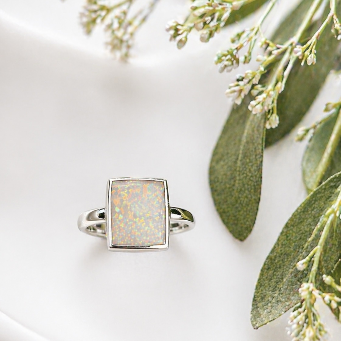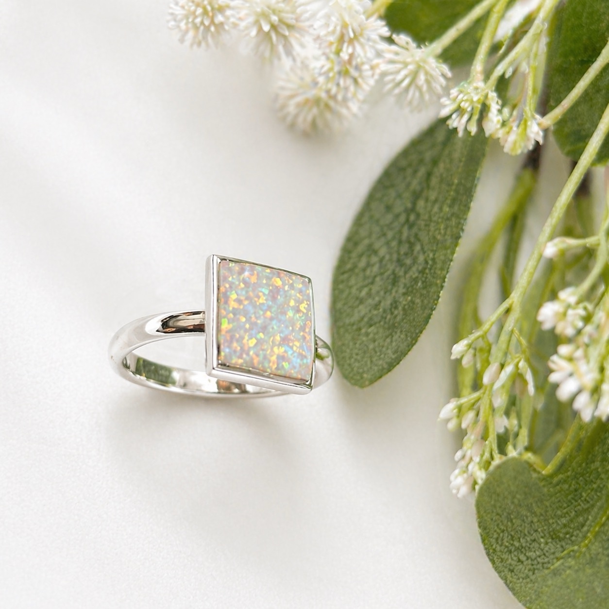 This is a sterling-silver-925 unique square white opaline ring