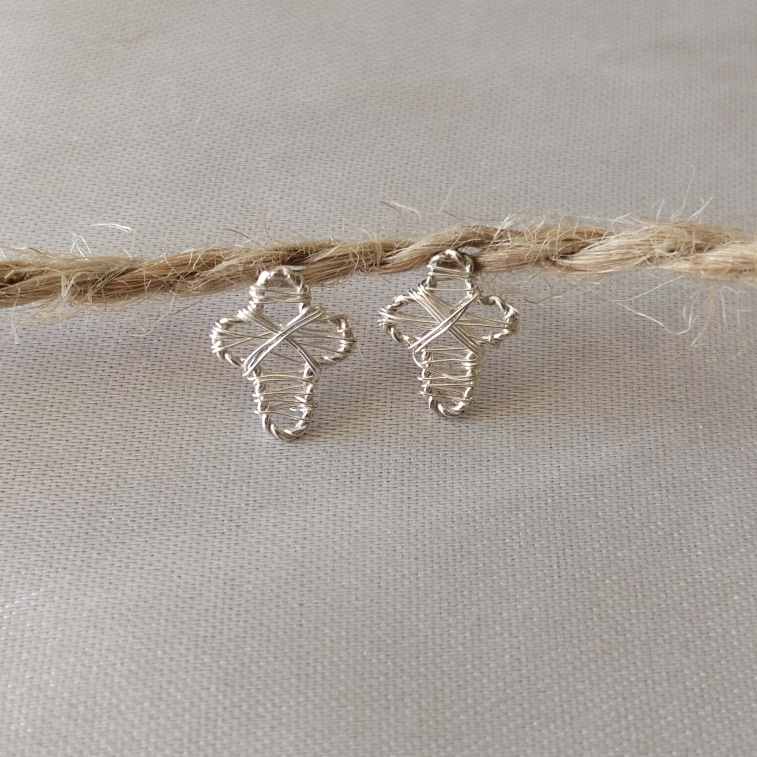 8×10mm A pair of sterling-silver-925 open work cross stud earrings.