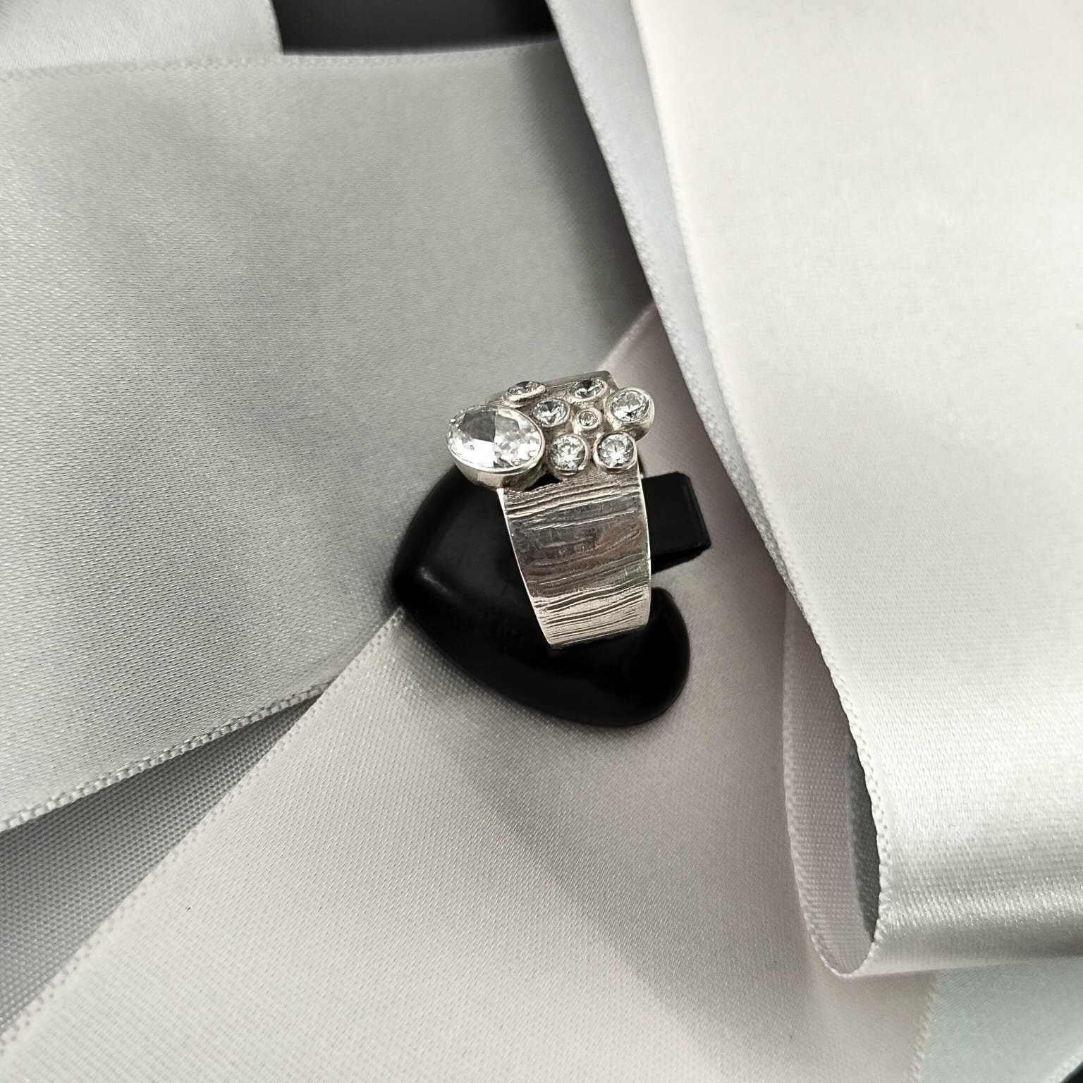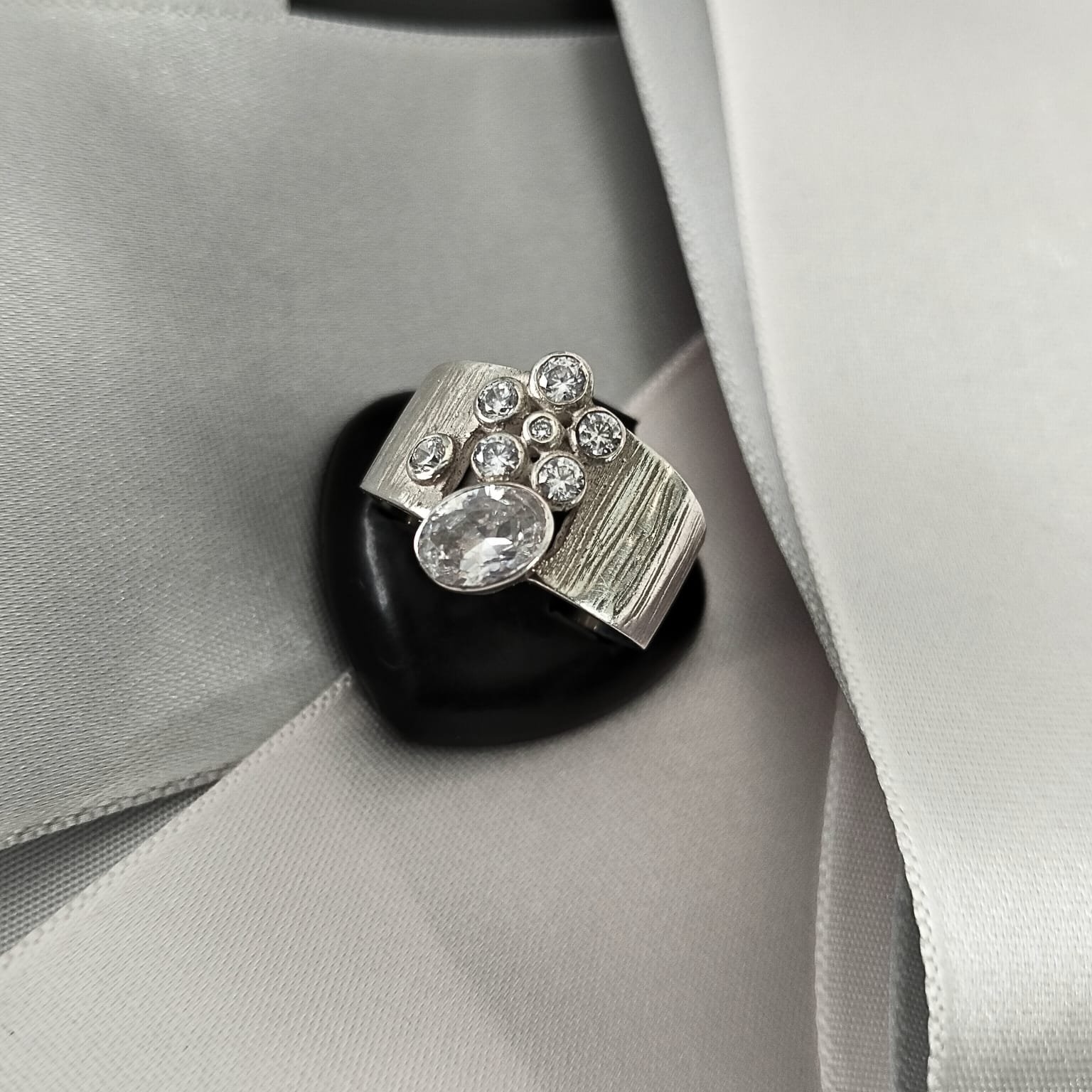 Bold sterling-silver-925 ring with an round oval-cut cz stones.