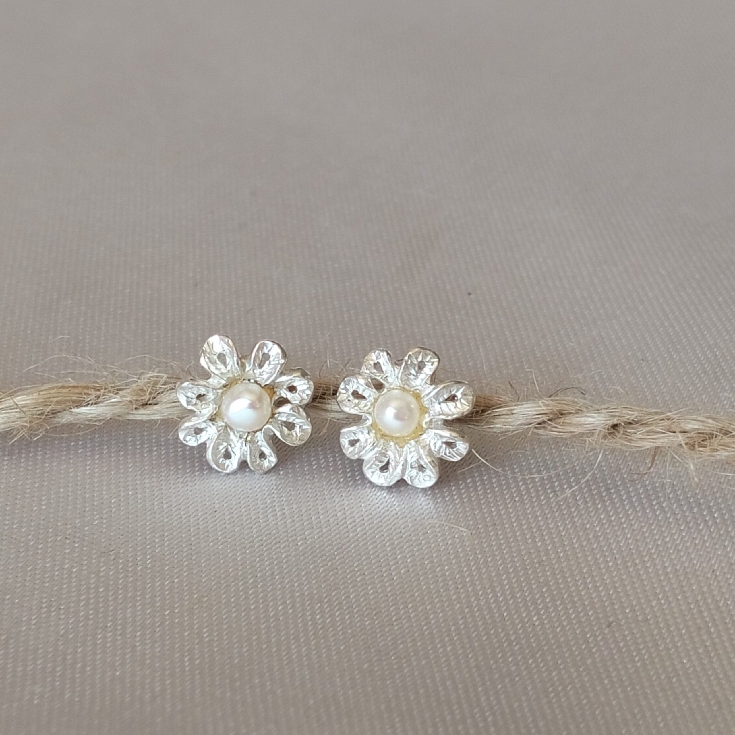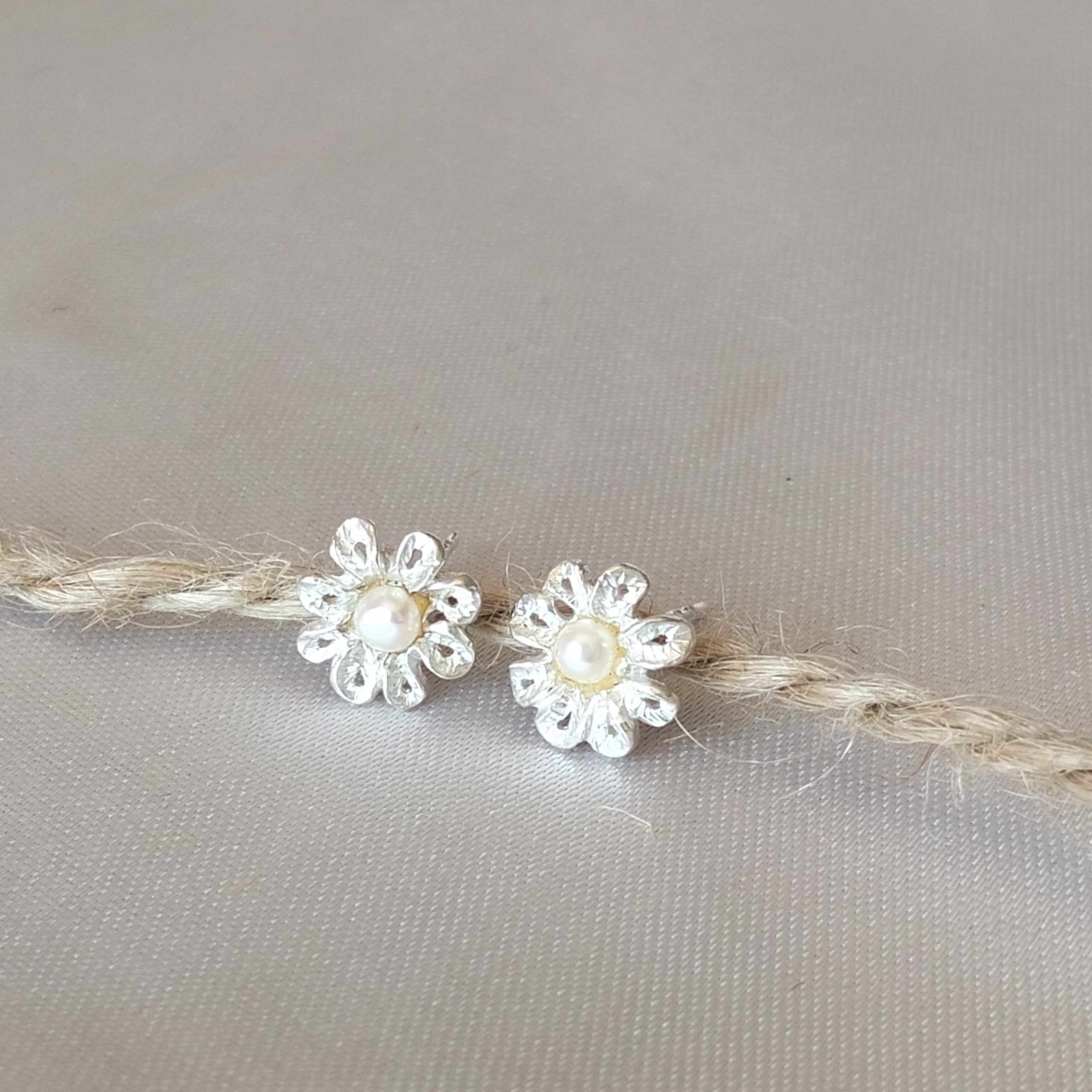 10mm Sterling-silver-925 pearl flower stud earrings.