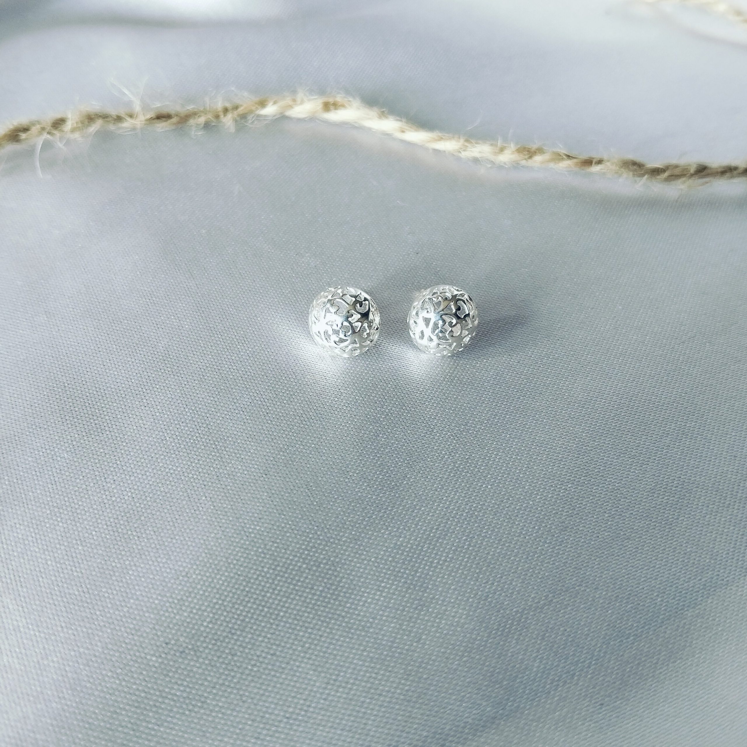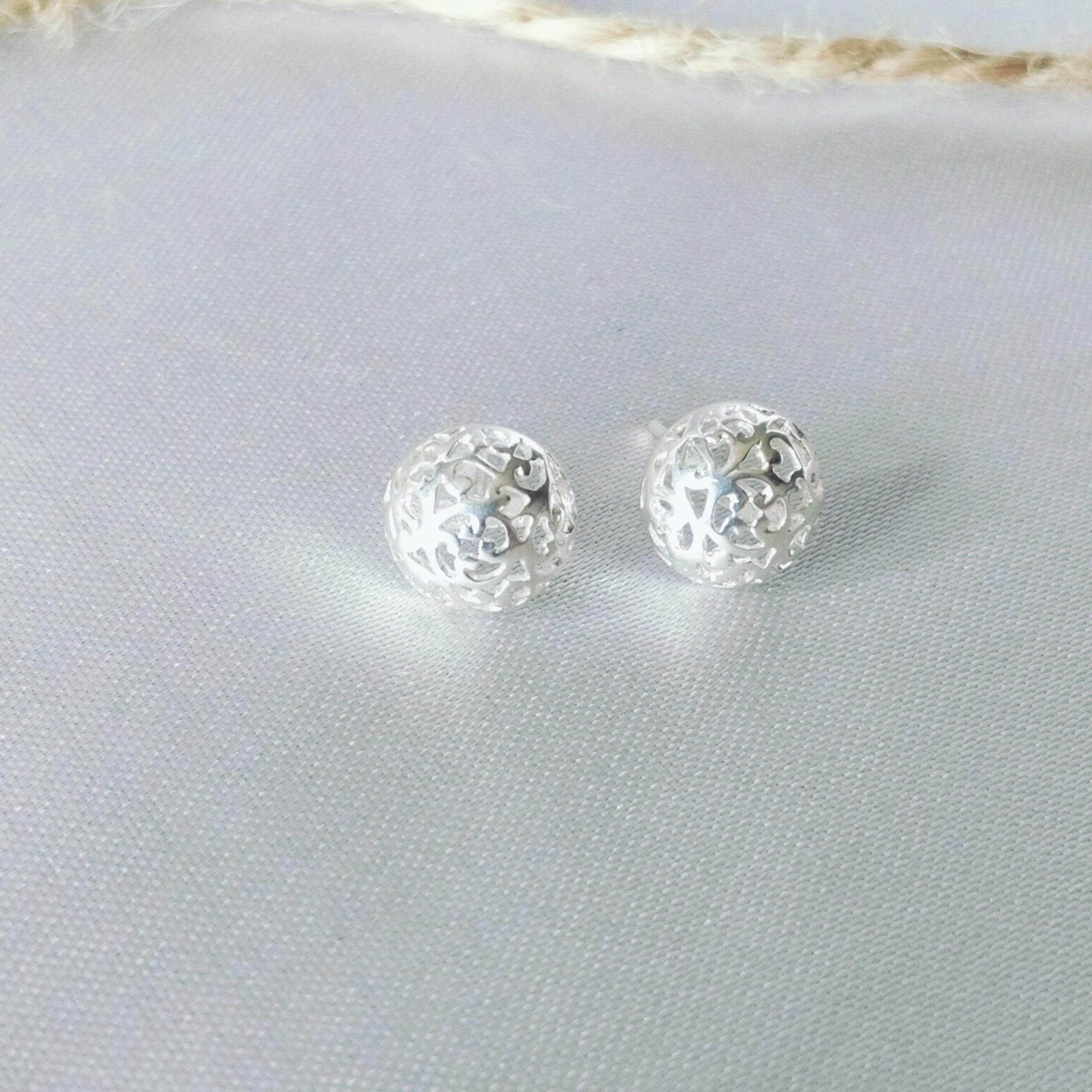 10mm A sterling-silver-925 round open work stud earrings.